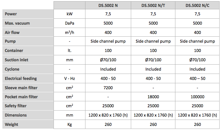 DS5000 unit high vacuum performance version. Power and filtering devices remain unchanged.