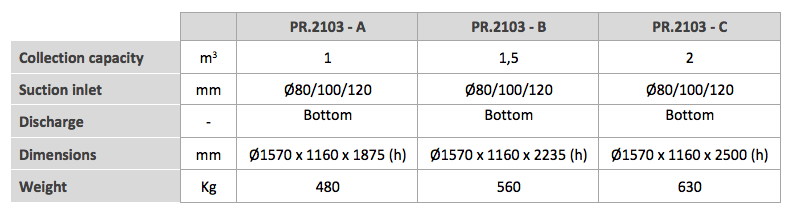 Mobile preseparator equipped with bottom discharge, suitable for the collection of solid, granular or dusty material. The cyclone situated on the top makes the material fall into container.