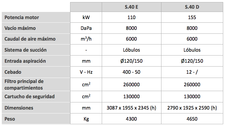 El término máximo en el campo de la aspiración industrial. S40 es una unidad que puede operar en situaciones extremas gracias a sus potentes motores diésel y eléctricos: combinada con un preseparador de recogida, esta unidad no tiene límites.