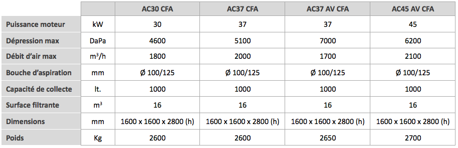 L’aspirateur peut être transporté par chariot élévateur ou pont roulant et peut être connectè à un système d’aspiration centralisé.