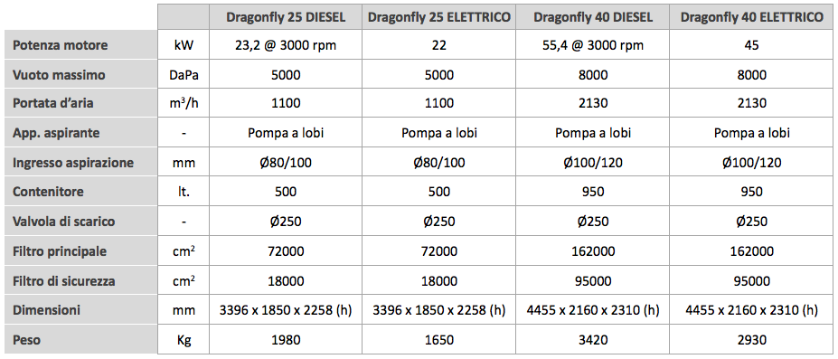 Unità aspirante con motore Diesel raffreddato ad acqua e pompa a lobi che consente il raggiungimento di un alto valore di vuoto. Il contenitore è dotato di ciclone, di sistema di pulizia automatico del filtro e di un efficiente sistema idraulico di posizionamento e rapido scarico in Big Bag tramite valvola a farfalla. L’installazione su carrello garantisce flessibilità di utilizzo e un’agevole movimentazione.